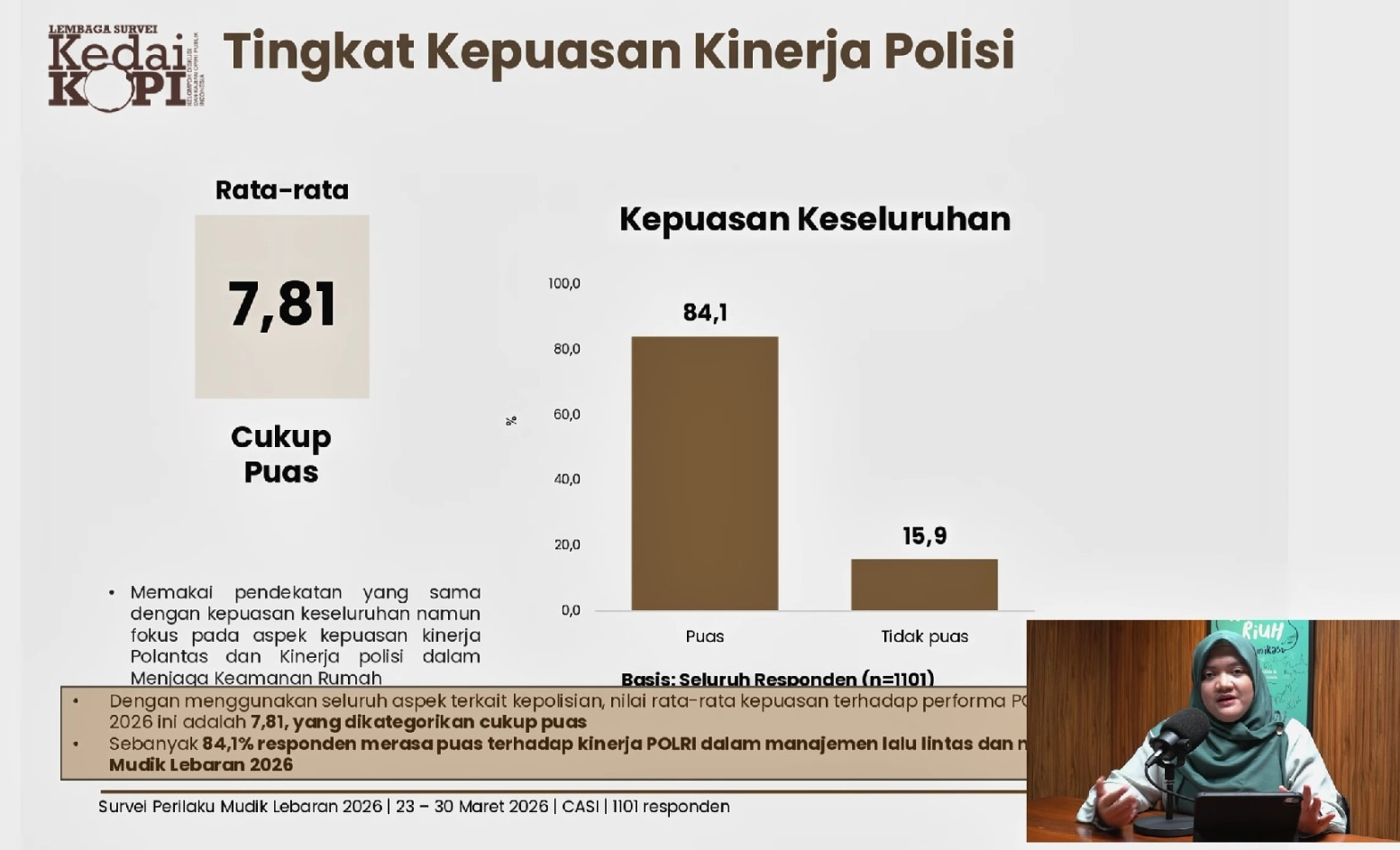 Survei KedaiKOPI: 88,8 Persen Masyarakat Puas dengan Manajemen Pemerintah dalam Mudik Lebaran 2026